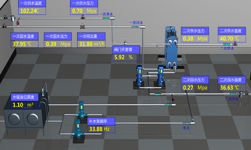 換熱站的原理是把一次網(wǎng)得到熱量,自動連續(xù)轉(zhuǎn)換為用戶需要的生活用水及采暖用水。即熱水(或蒸氣)從機組的一次側(cè)入口進入板式換熱器進行熱交換后,從機口一次側(cè)出口流出,二次側(cè)回水經(jīng)過過濾器除去污垢后